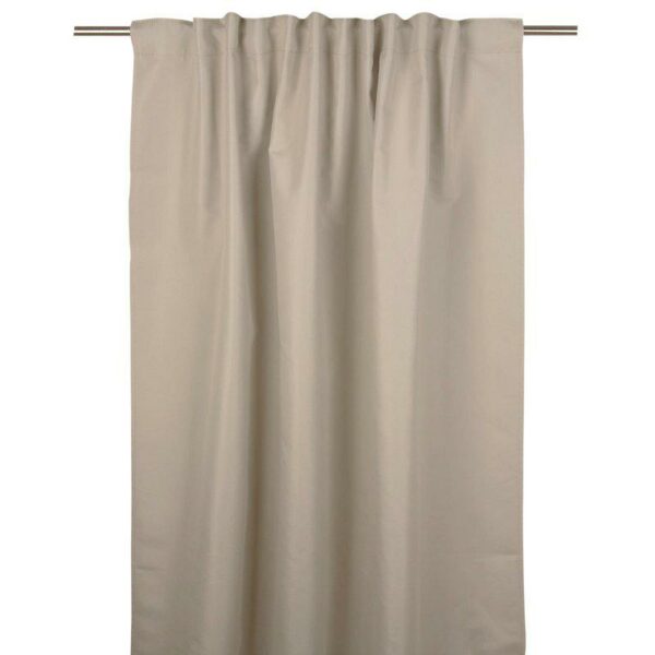 Enfärgade gardinlängder gjorda i återvunnet material kan aldrig bli fel. De gör inredningen mysig och hemtrevlig, samtidigt som du skapar en klassisk känsla i hemmet. Gardinen har multiband, vilket gör att du kan hänga upp den på tre olika sätt: med fingerkrokar, rynkbandskrokar eller direkt på stången med hällor.