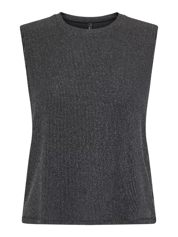 ONLCAROL S/L O-NECK GLITTER TOP Black Silver Glitter