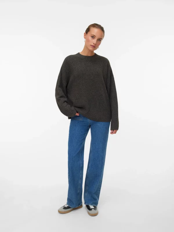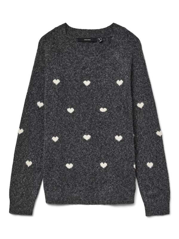 VMDOFFY INTARSIA LS O-NCK PULLOVER Dark Grey