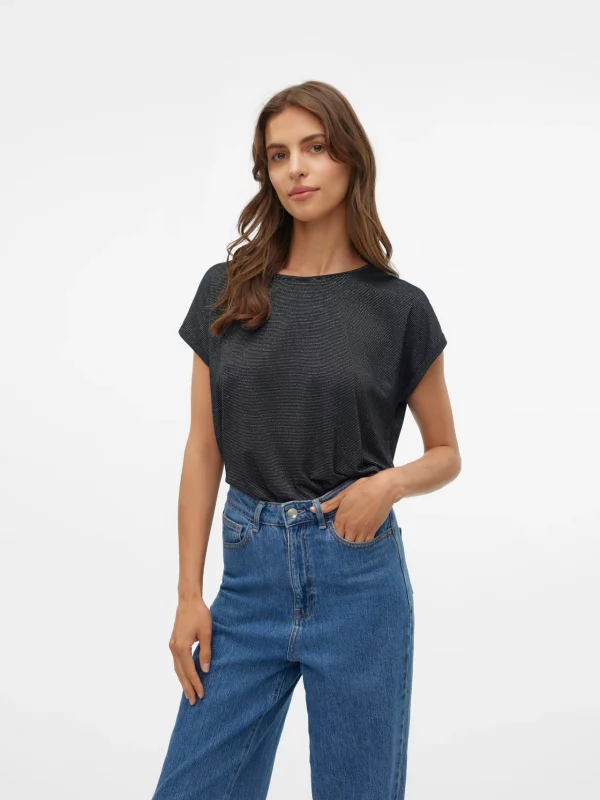 VMLAVA GLITTER SS TOP STRIPE Oatmeal