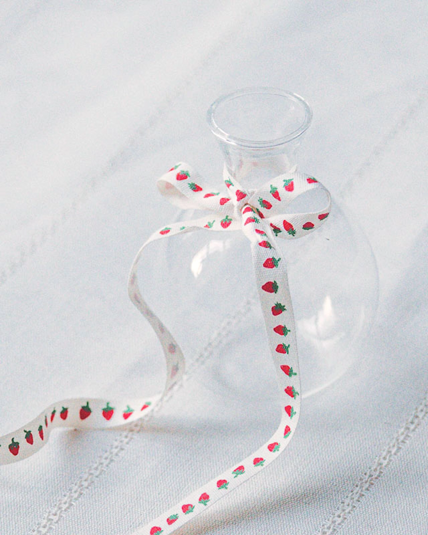 Somrigt band med jordgubbar, ett ljuvligt dekorationsband både till buketter och paket.