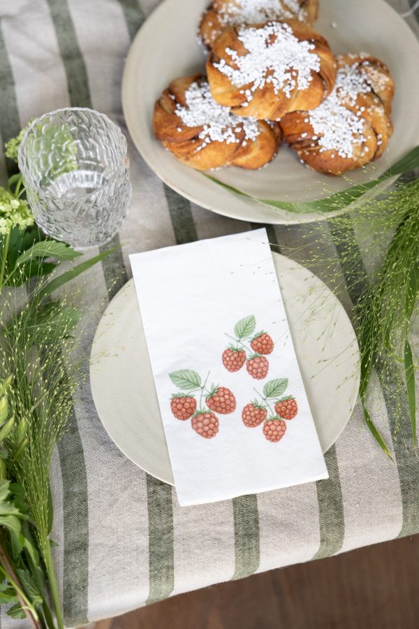 En stilren servett som passar fint till vårens och sommarens alla dukningar.