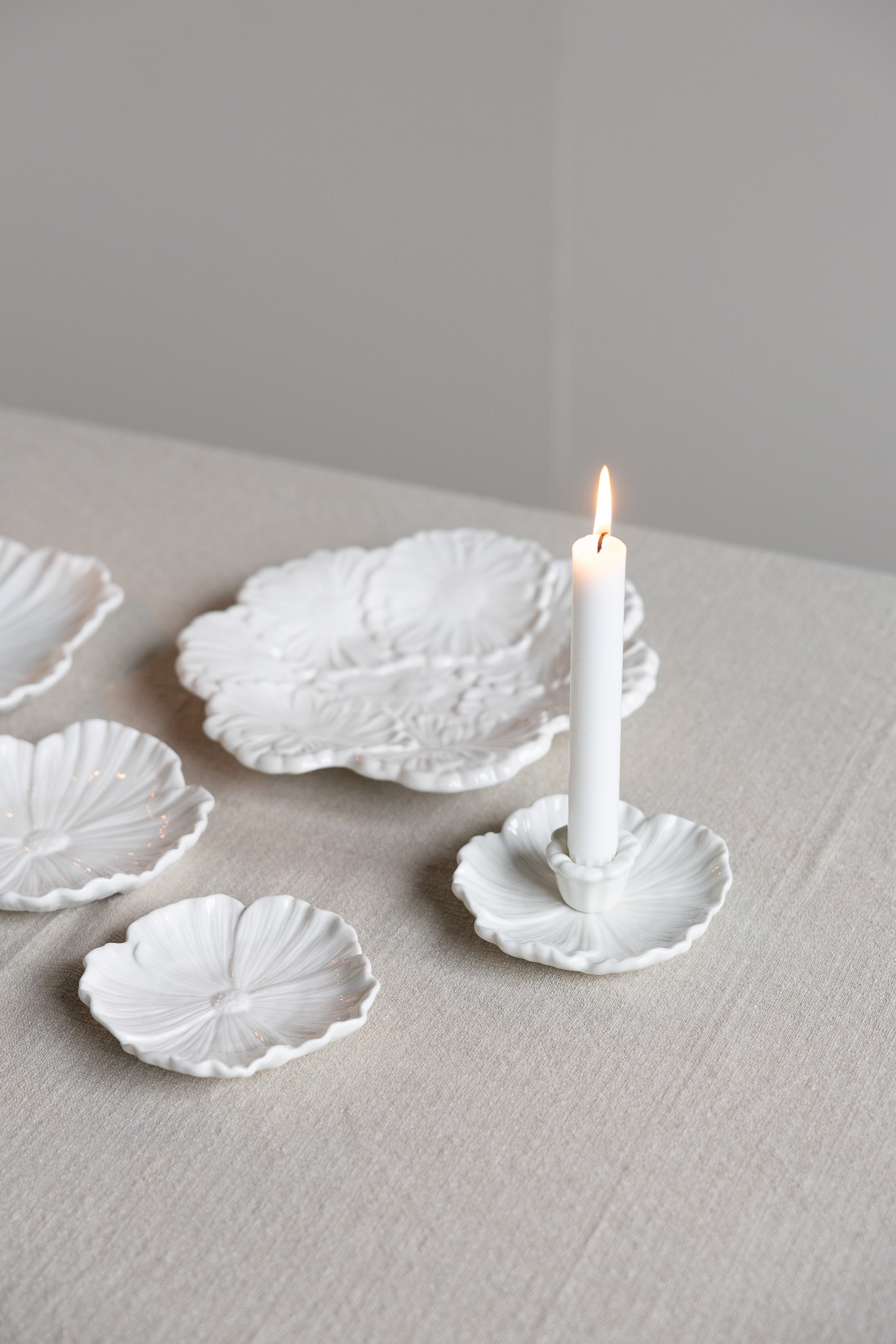 Keramikljusstake i form av en blomma. Detta vackra konstverk är både dekorativt och funktionellt. Placera ljusstaken i mitten av matbordet för att skapa en mysig känsla, eller ställ den bredvid sängen och använd den även som förvaring för smycken.