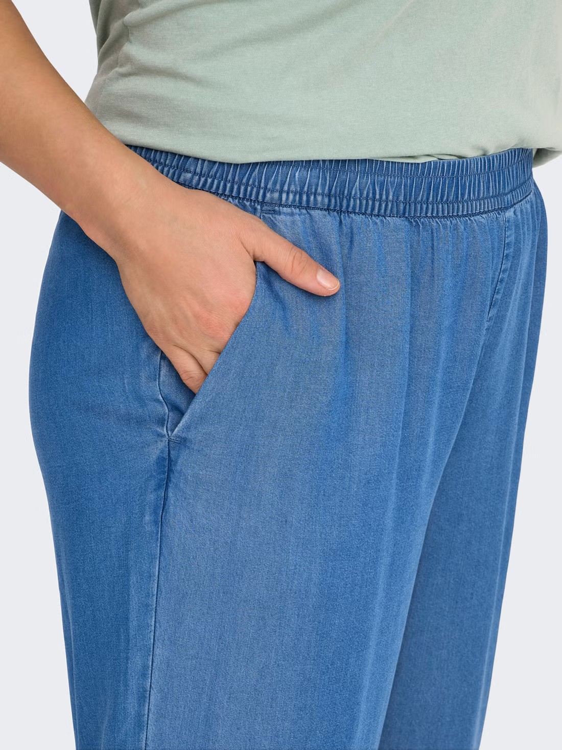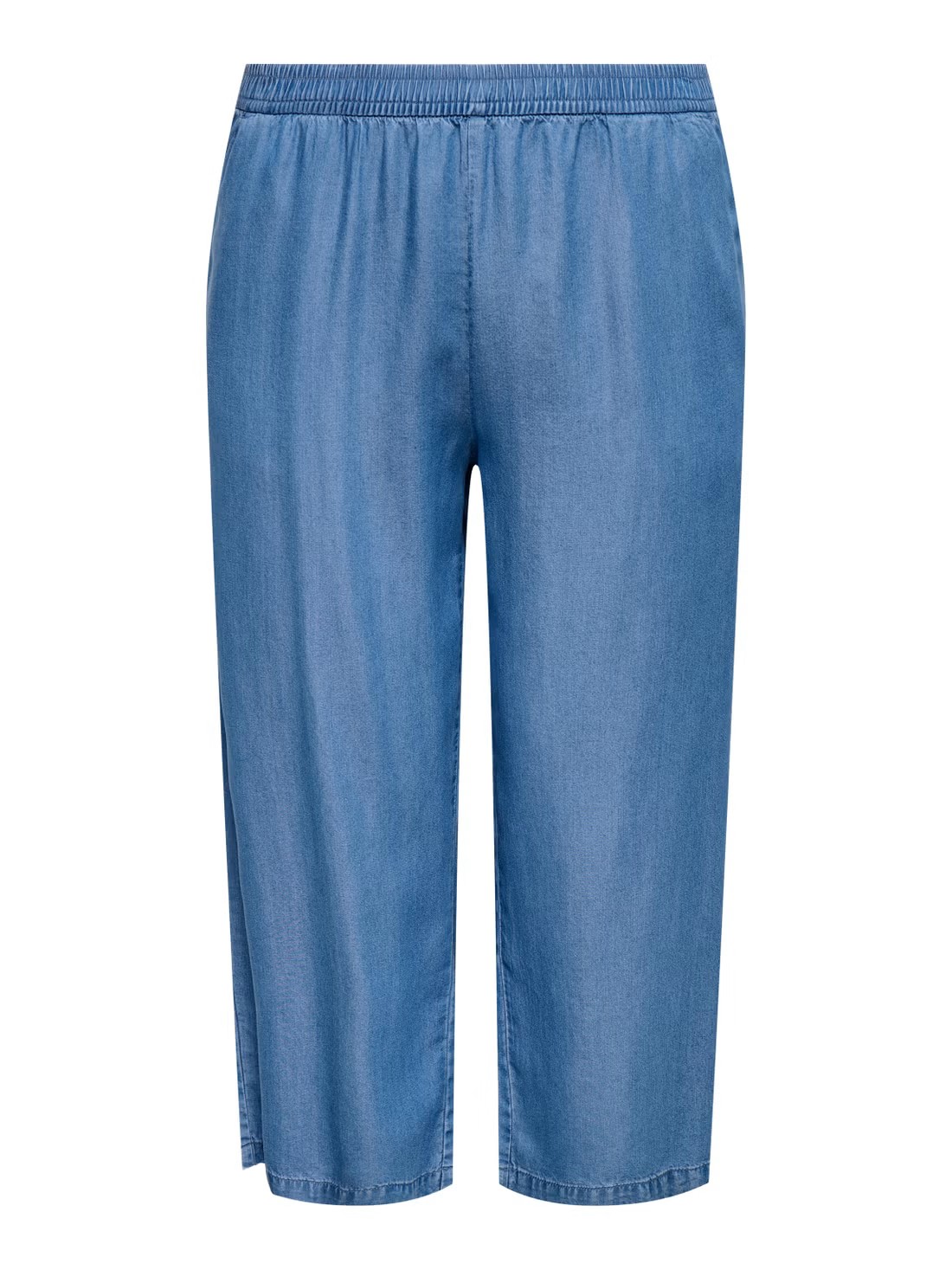 Ett par culotte byxor i ett mjukt och behagligt material som påminner om denim. Lätt att kombinera med andra plagg och passar lika bra till vardags som till mer uppklädda tillfällen.