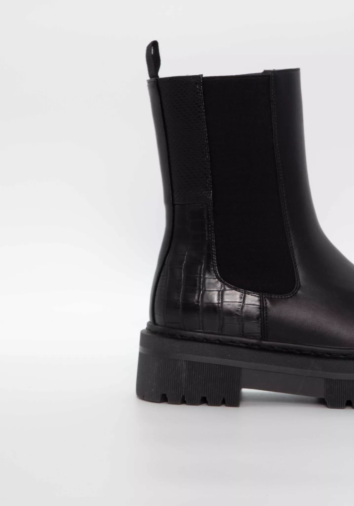 Chelsea boots i en något högra modell och med fina diskreta detaljer som croco-mönster baktill.