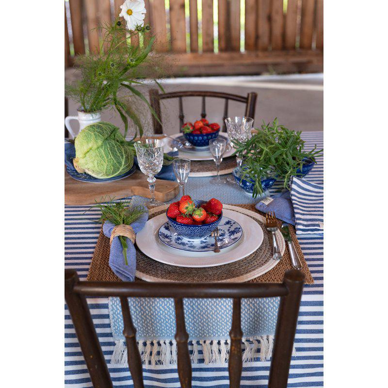 Denna klassiska randiga duk är ett elegant och stilfullt tillägg till din bordsdukning, med sin tidlösa design.
