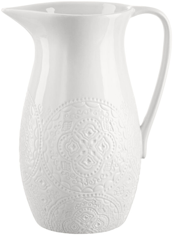 Servisen har en mjuk vit färg med inslag av små prickar.