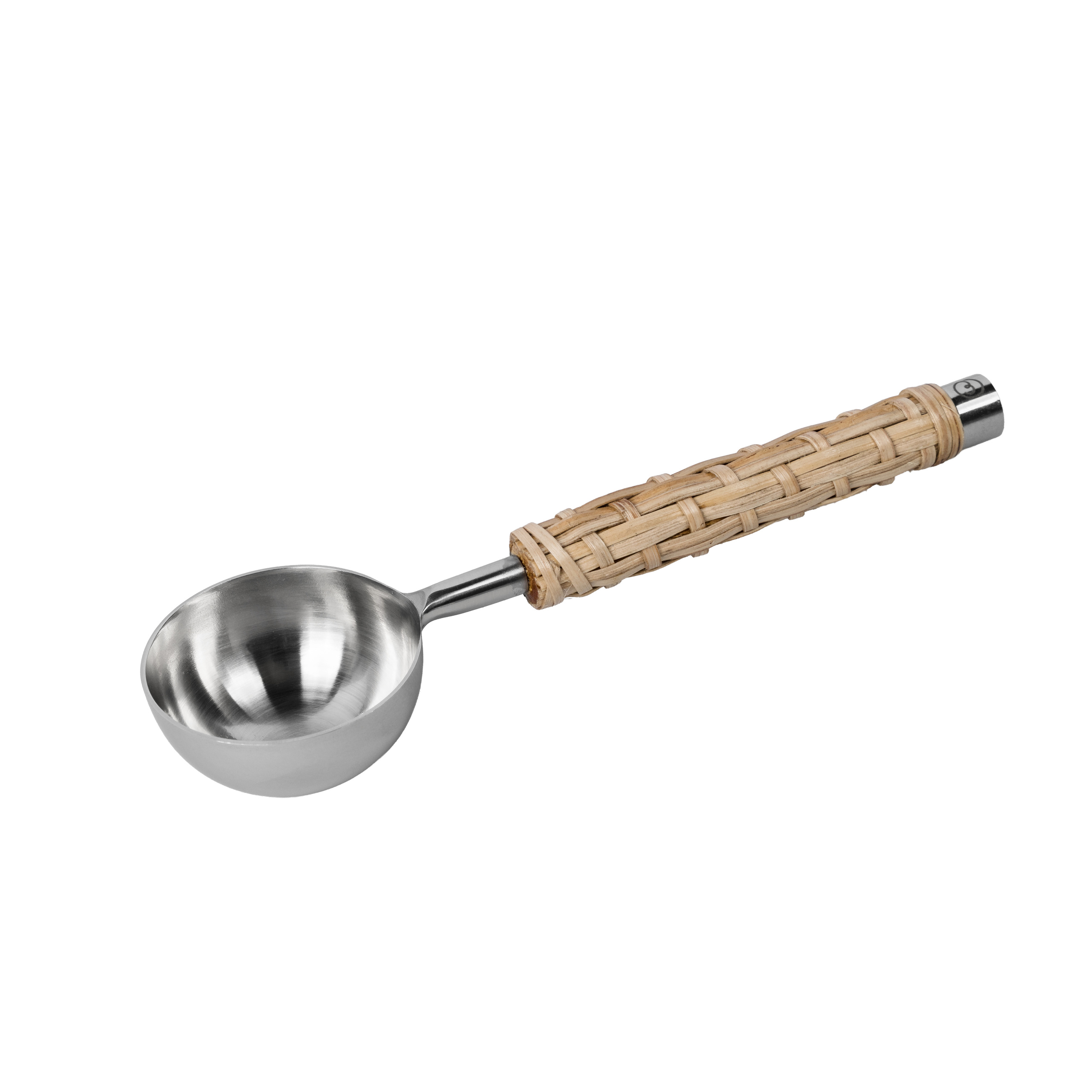 Kaffemått i rostfritt stål och flätat sjögräs.