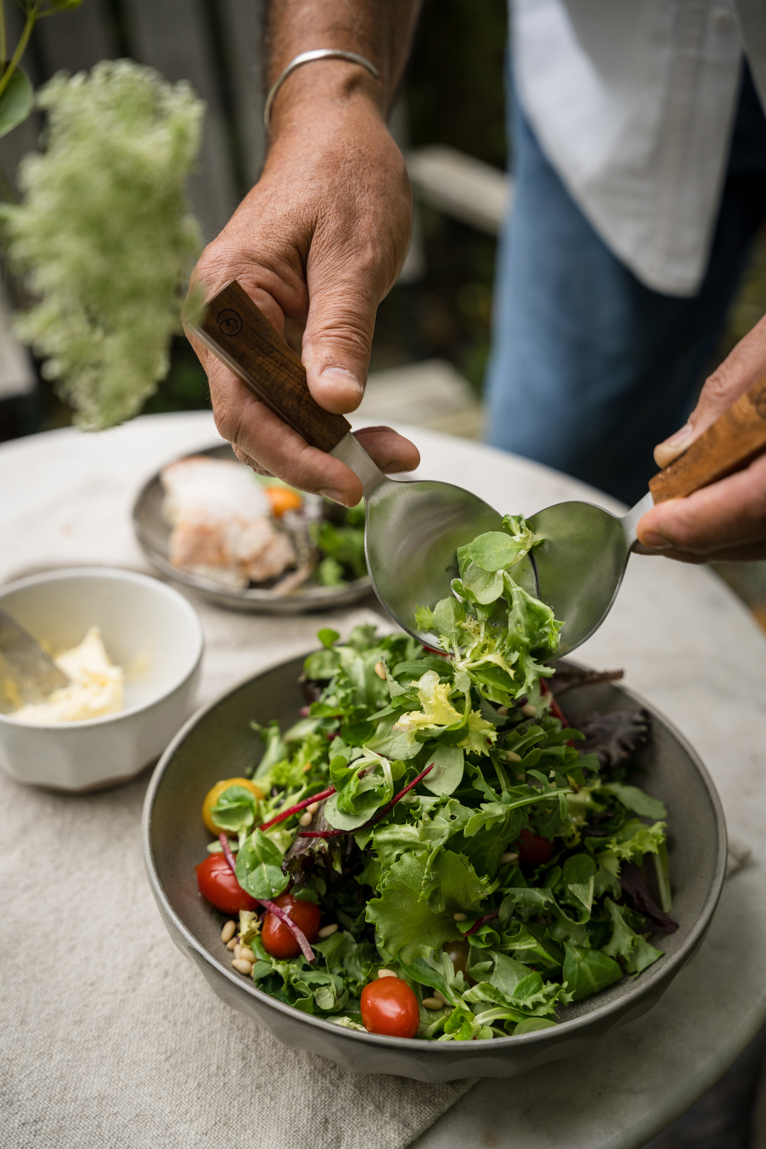 Salladsbesticken blir en enkel och stilfull detalj till det dukade bordet, en tidlös design gör att dom är lika fina till vardags som festligare tillställningar.