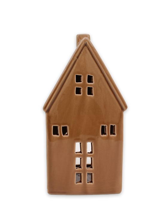 Hus i glaserad keramik för ljusslinga eller batteridrivet värmeljus.