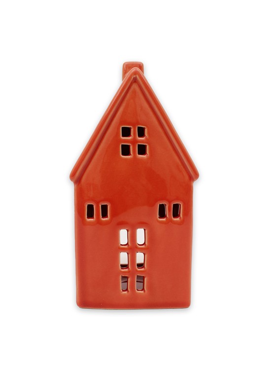 Hus i glaserad keramik för ljusslinga eller batteridrivet värmeljus.