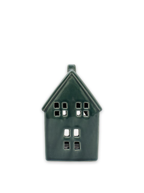 Hus i glaserad keramik för ljusslinga eller batteridrivet värmeljus.