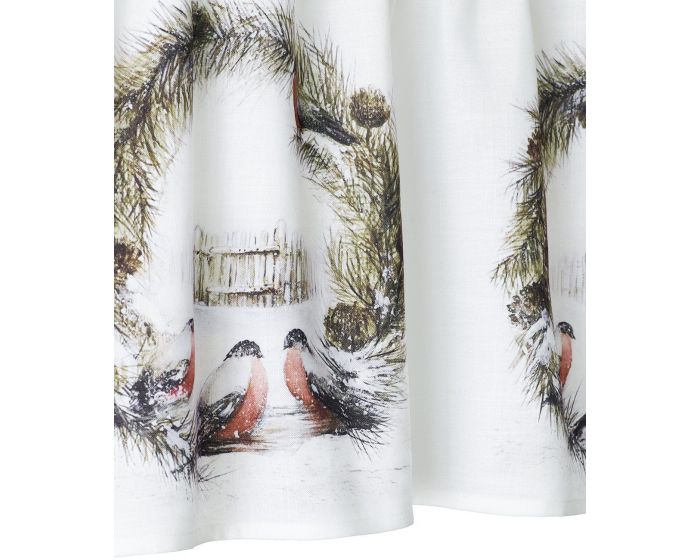 Ljuvlig gardinkappa med granriskransar och domherrar.