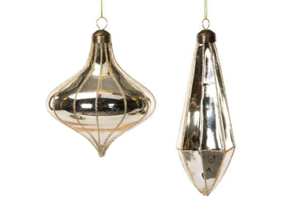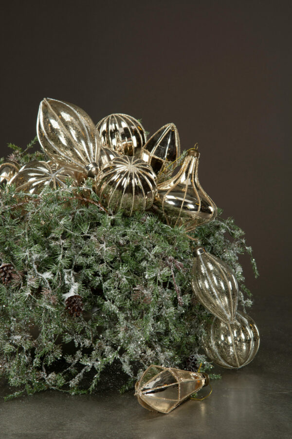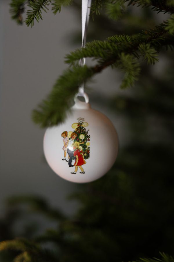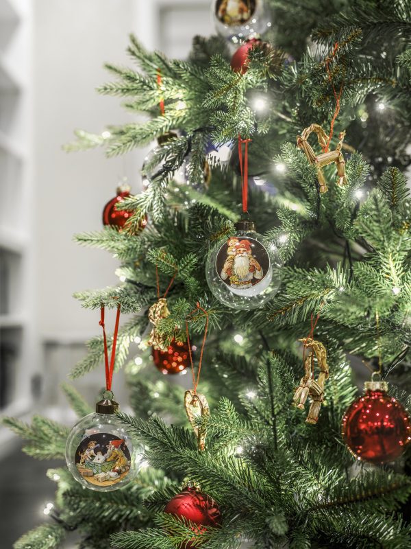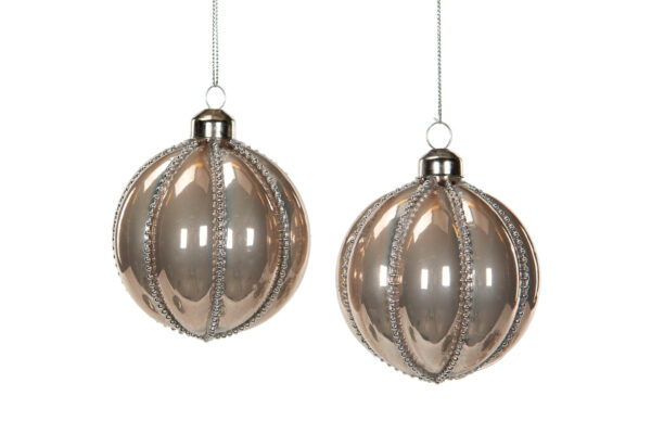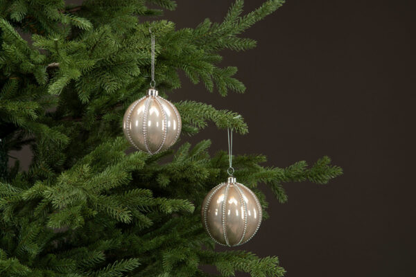 Eleganta julgranskulor i glas. Behagliga färger i sand, mullvad och guld.