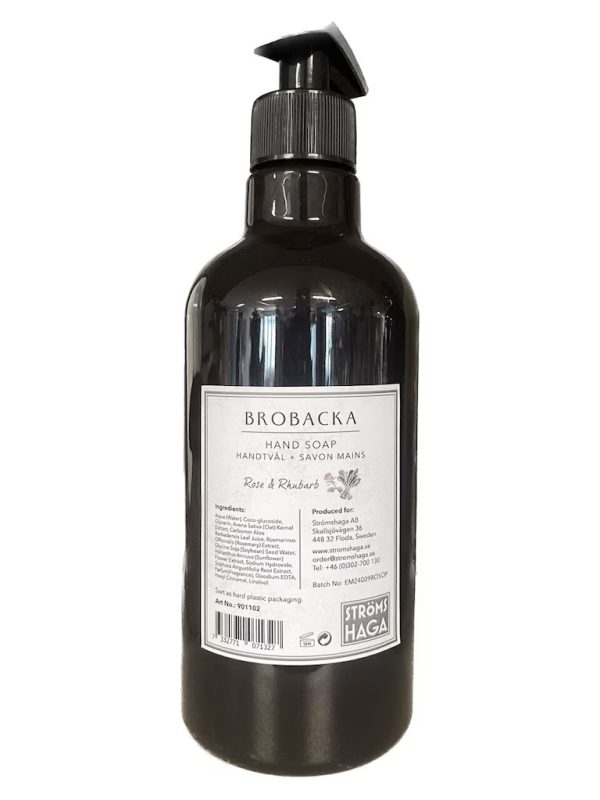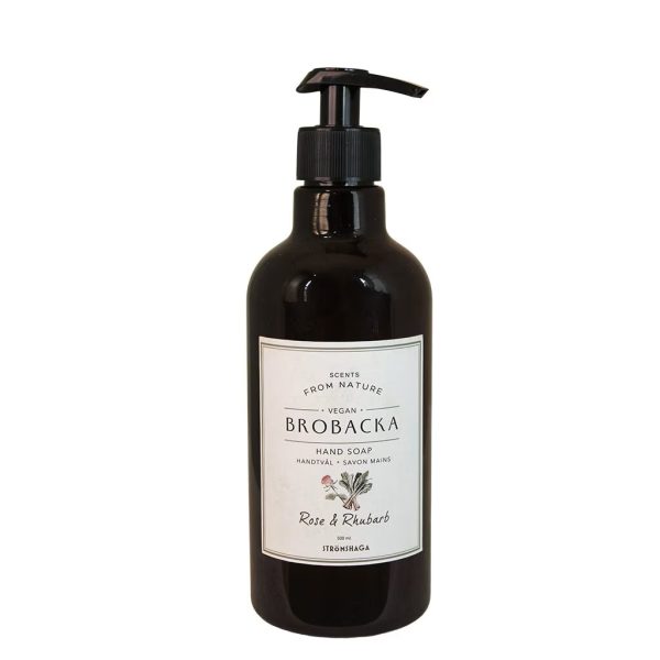 “Brobacka är Strömshagas exklusiva kollektion med handtvålar, handkrämer, disktvålar och allrengöringsmedel som finns i flera olika dofter. Allt är naturligt och veganskt.”