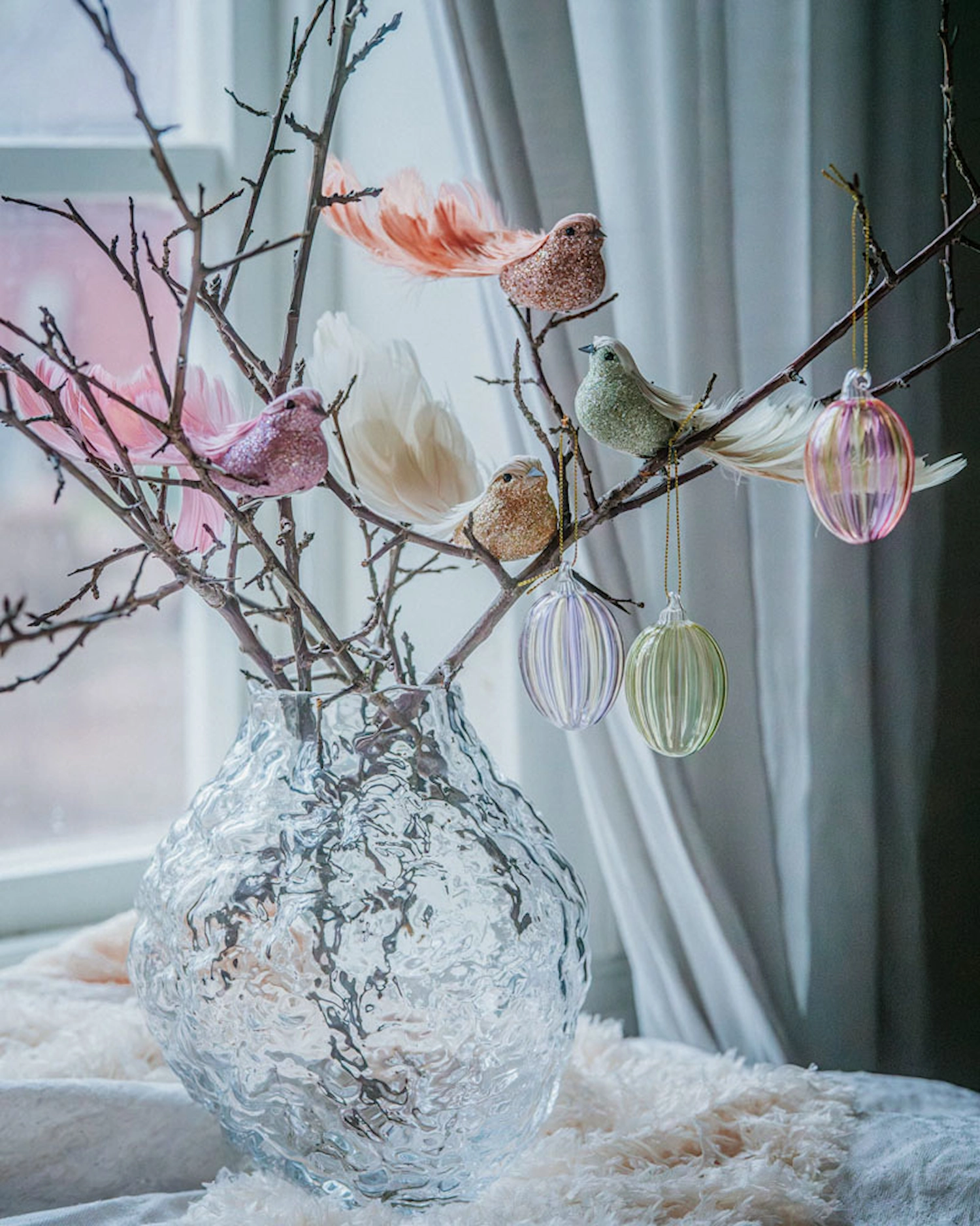 Pynta påskriset eller en påskbukett med dessa randiga hängande glasägg.