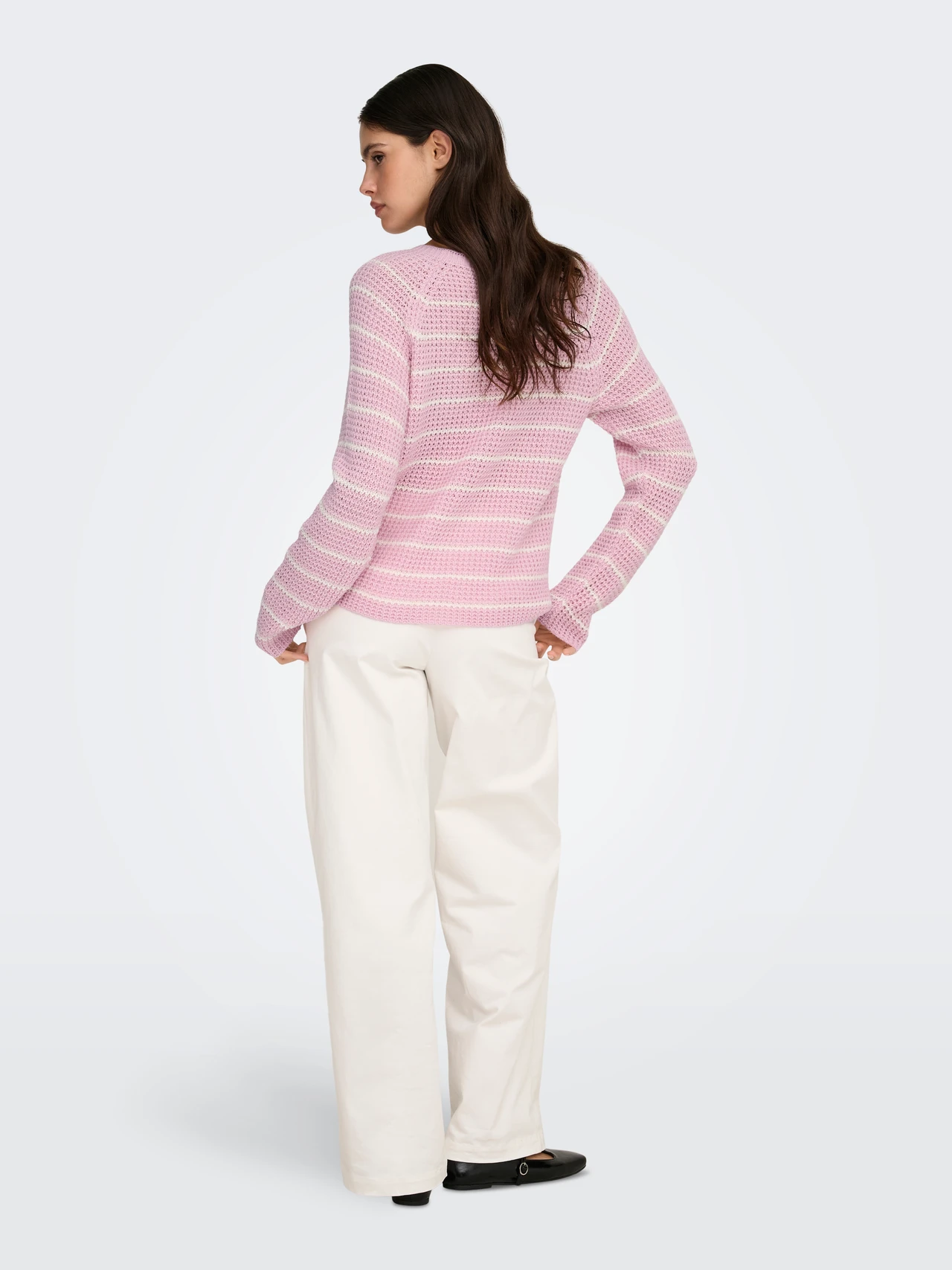 En mjuk och skön stickad tröja med klassiska ränder. Den avslappnade passformen och den runda halsen gör den perfekt för både vardag och lediga stunder.