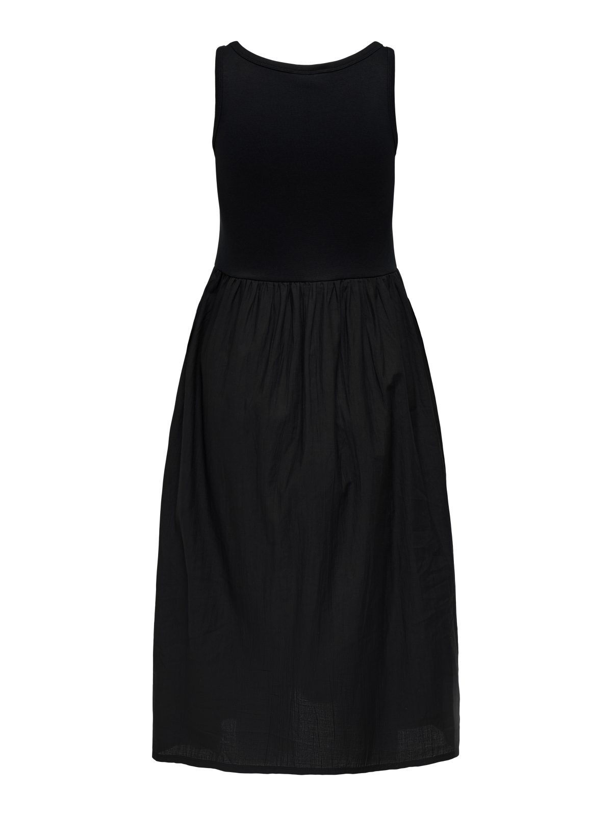 Överdelen är i stretchigt material och kjolen i vävt material.