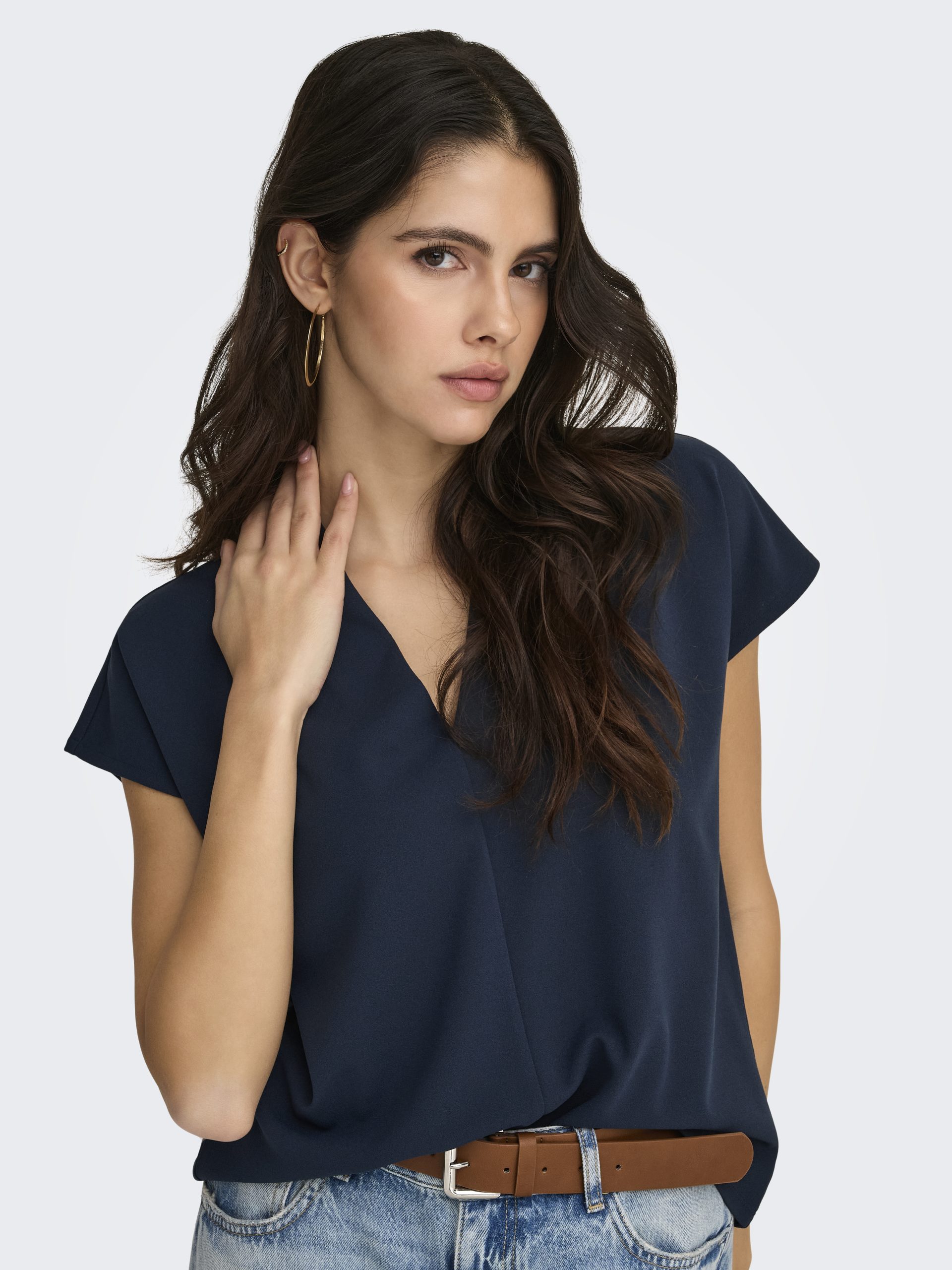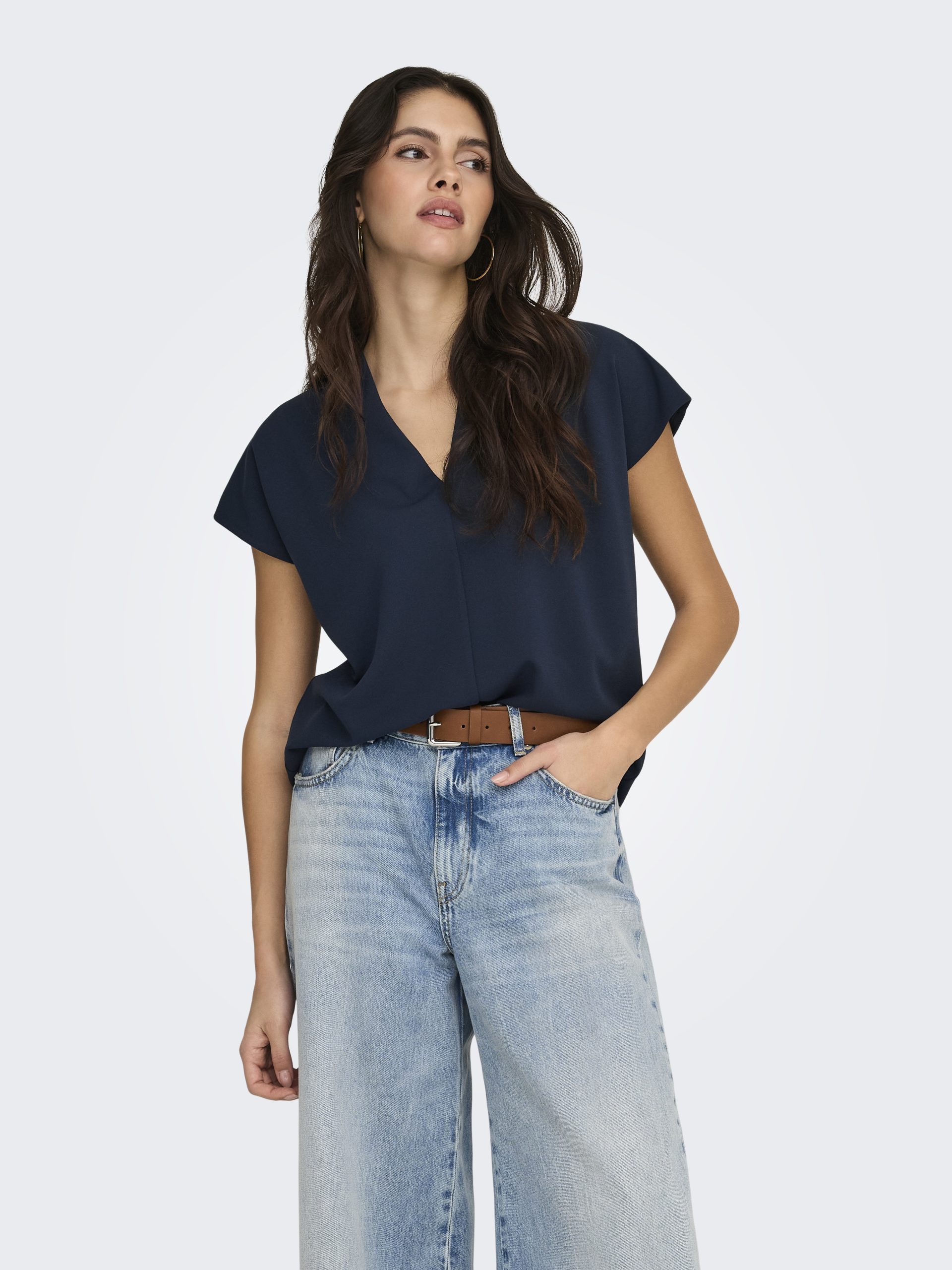 Den smickrande V-ringningen ger ett avslappnat men ändå elegant uttryck.