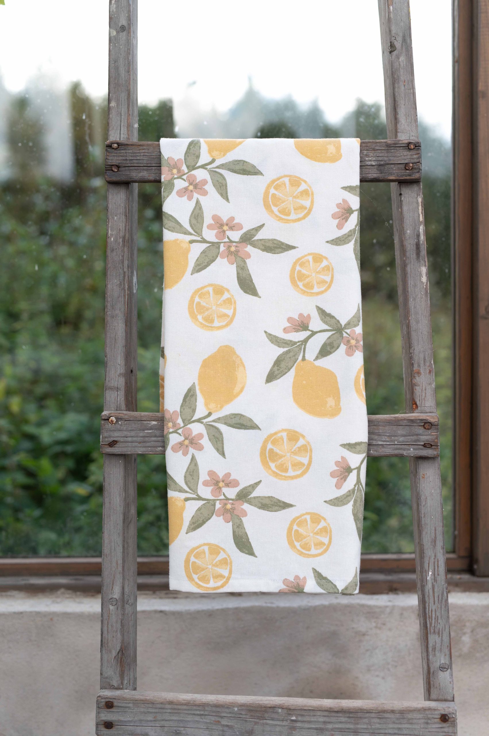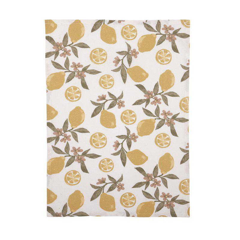 Kökshandduk tillverkad av återvunnen bomull och polyester, med ett ljuvligt citronmönster som för tankarna till Medelhavets sol, hav och doft av citrus.