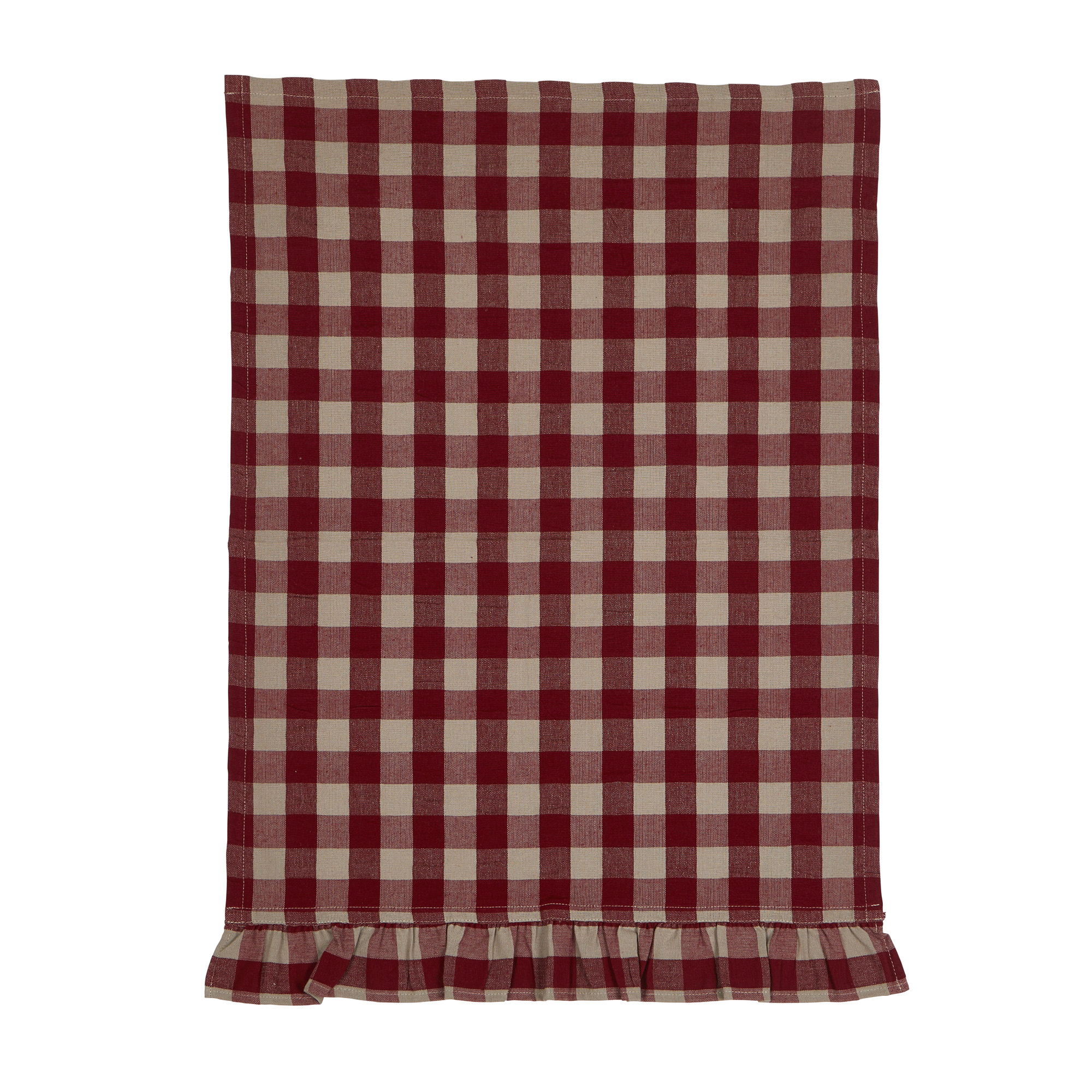En kökshandduk i bäckebölja med en volang längs kanten är en tidlös och stilren detalj för ditt kök.