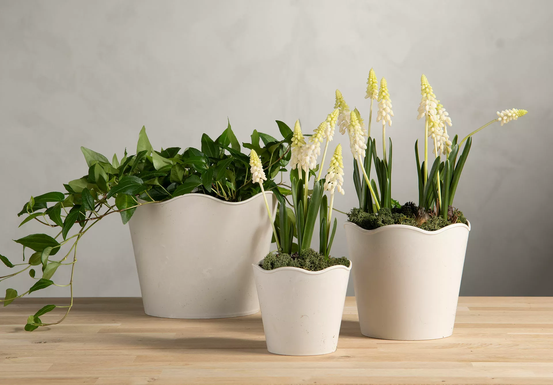 Det kan skilja i färg mellan krukorna eftersom dom är melerade.