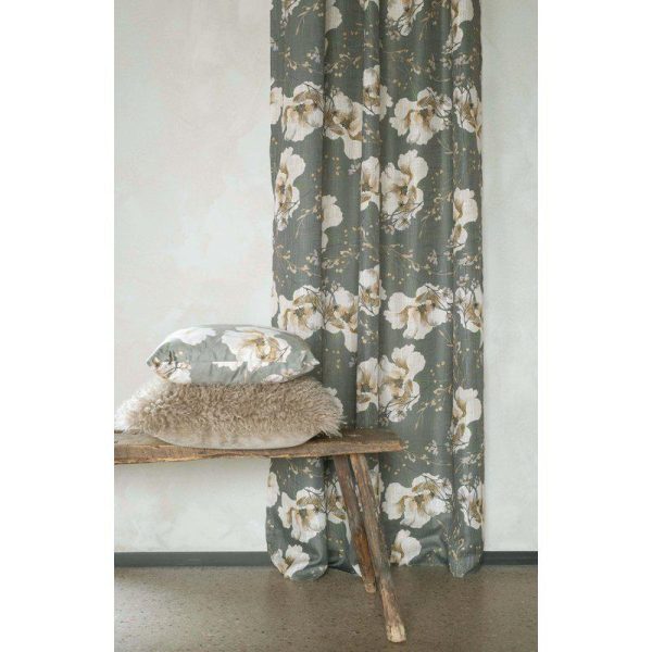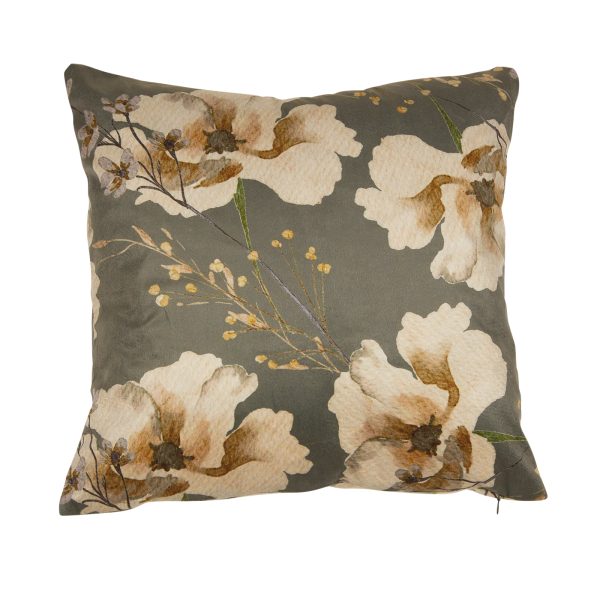Digitaltryckt på en slät canvas som ger en elegant och stilren känsla. Baksidan är randig, vilket skapar en fin kontrast mot det livliga blommönstret.