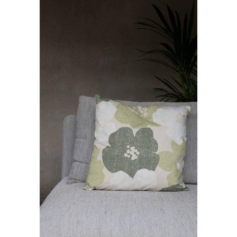 Kuddfodral med ett storblommigt mönster som för tankarna till retrostilens lekfulla färger och former.