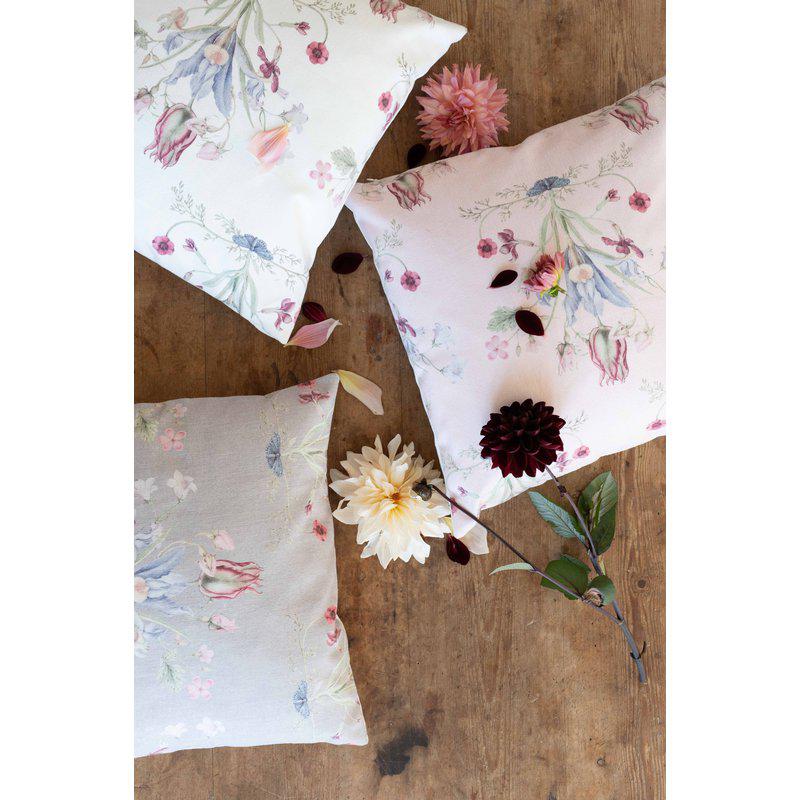 Kuddfodral med ett romantiskt blommönster på framsidan, tillverkat i en mjuk och härlig kvalitet som ger en behaglig känsla.