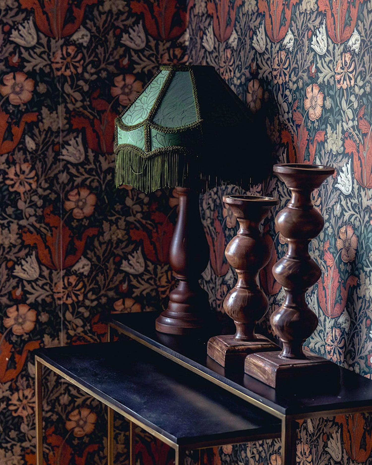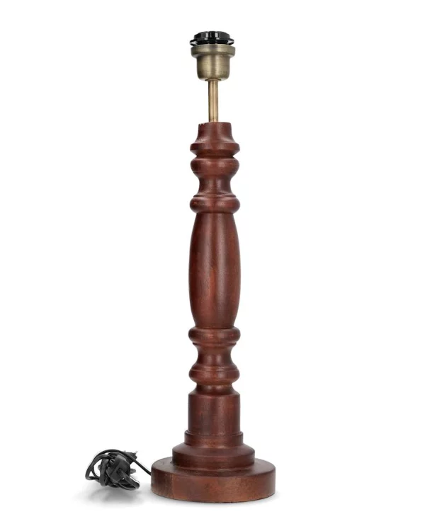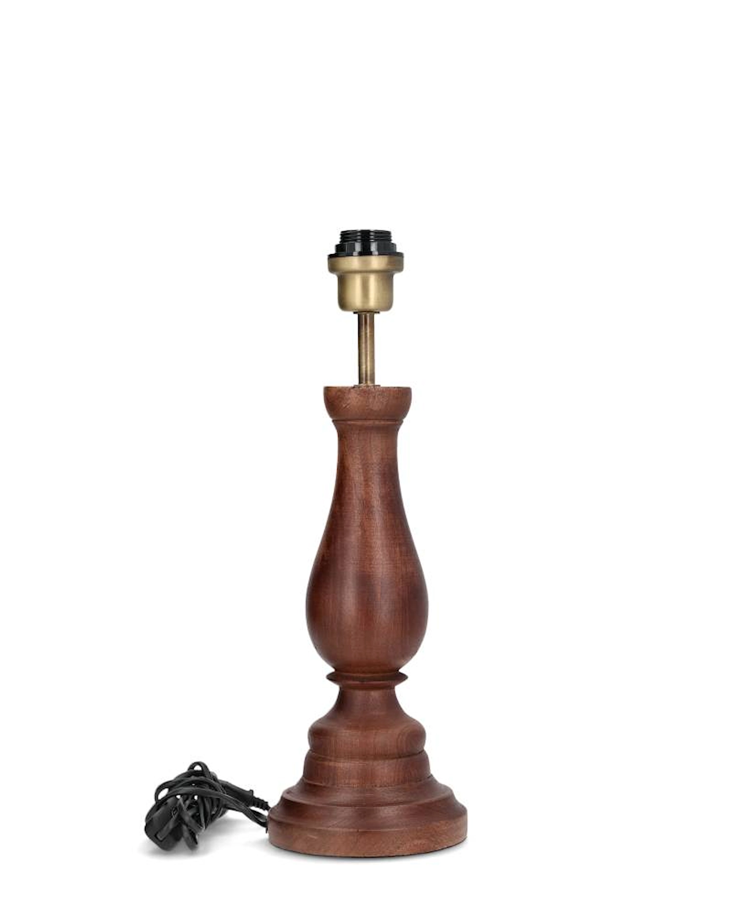 Gedigen lampfot i brunt trä, en läcker pjäs som pryder fönster likaväl som byrån.
