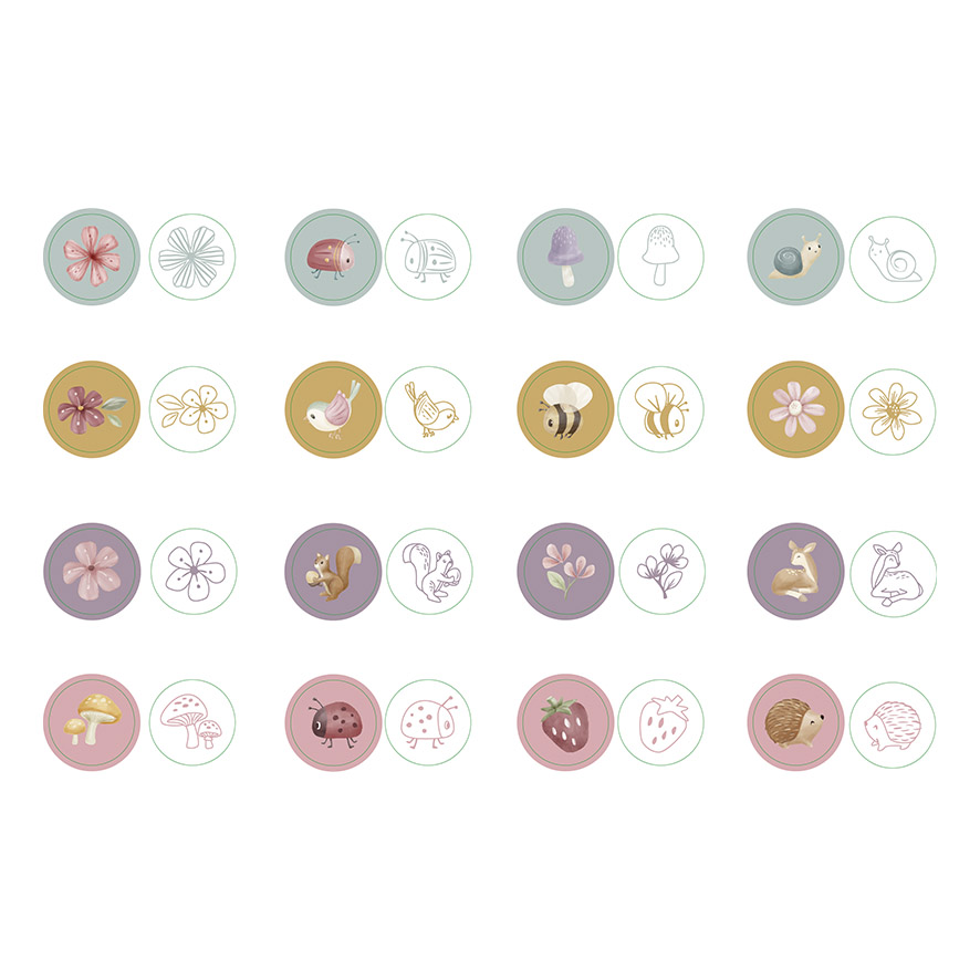 16st olika stämplar djur och natur motiv. Låt barnet skapa en egen skog med hjälp av dessa stämplar, eller en fin teckning.