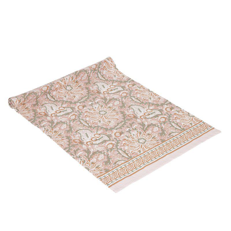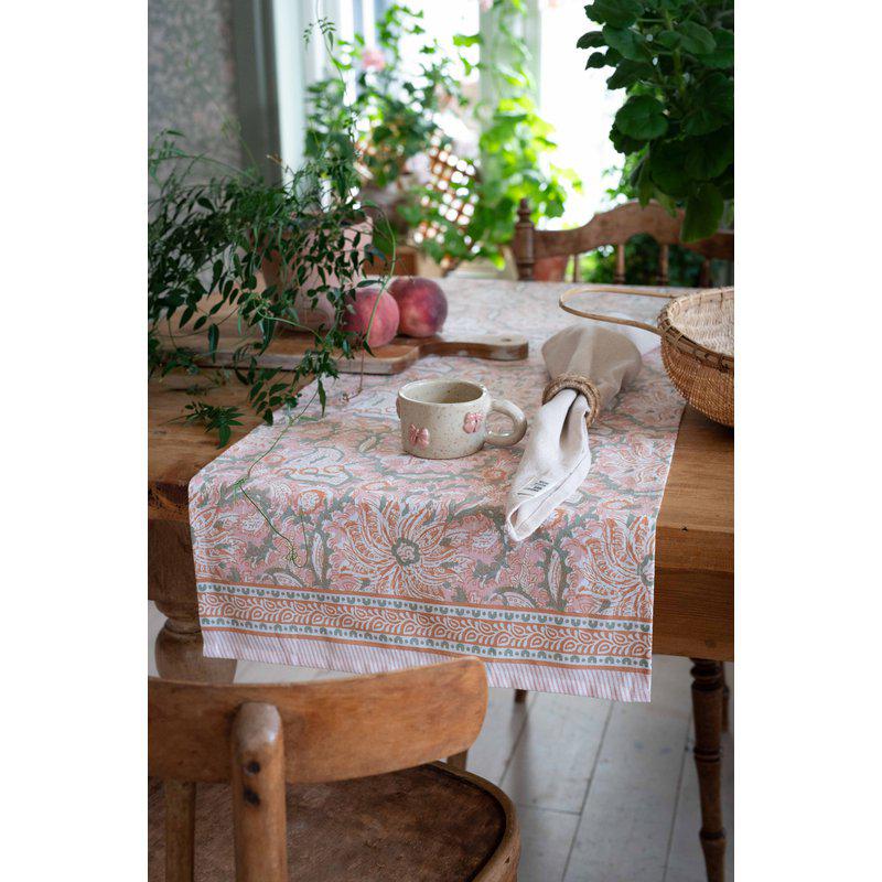 Bordslöpare i 100% bomull med ett modernt och härligt mönster som skapar en fräsch och stilfull känsla i dukningen. Löparen är prydd med en elegant bård på kortsidorna som ramar in designen och ger ett harmoniskt och genomtänkt uttryck.