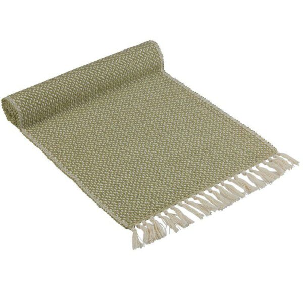 En bordslöpare i bomull med ett klassiskt rutmönster i milda färger.