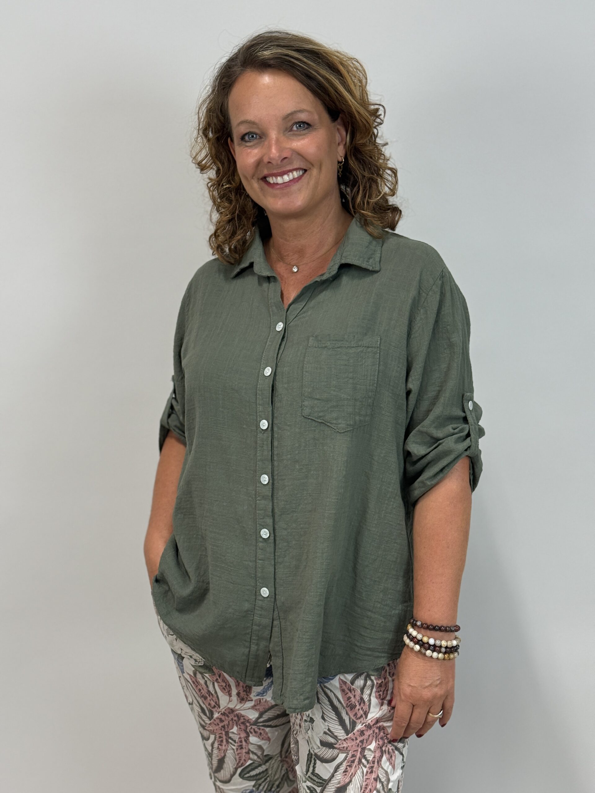 Skjorta i bomull som har en fin struktur som påminner om linne.