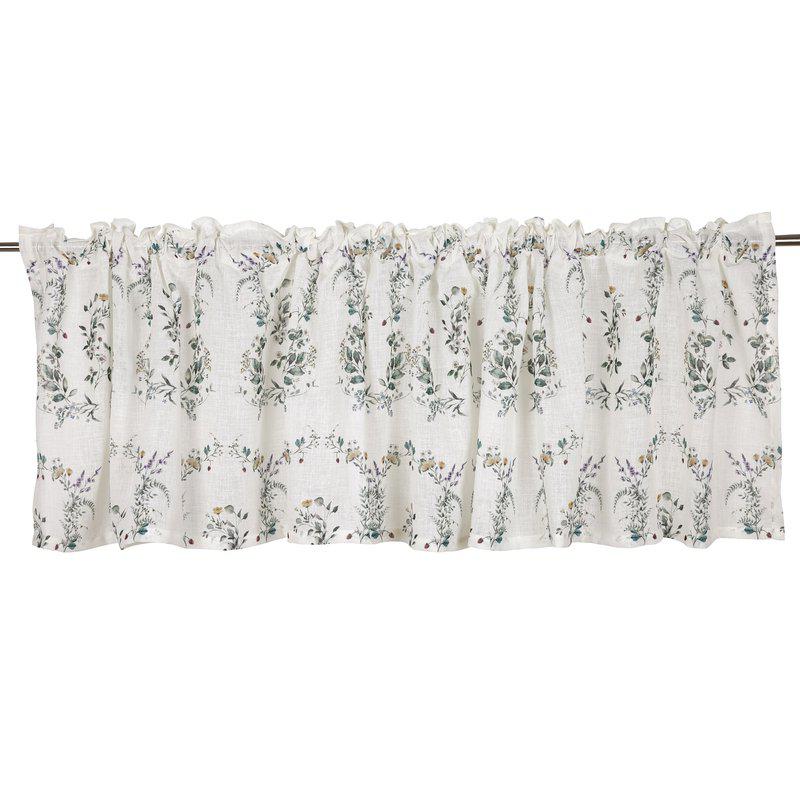 Charmig gardinkappa i tunn, skir kvalitet som släpper igenom ljuset på ett mjukt och behagligt sätt. Den pryds av ett småblommigt mönster med smultron och blad som ger en romantisk och lantlig känsla.