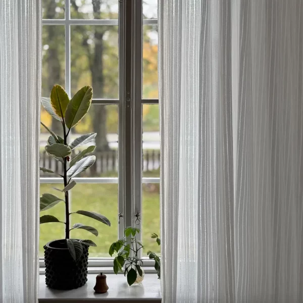 Gardinlängderna släpper in det naturliga ljuset på ett fint sätt och skapar en mjuk och behaglig atmosfär i rummet.
