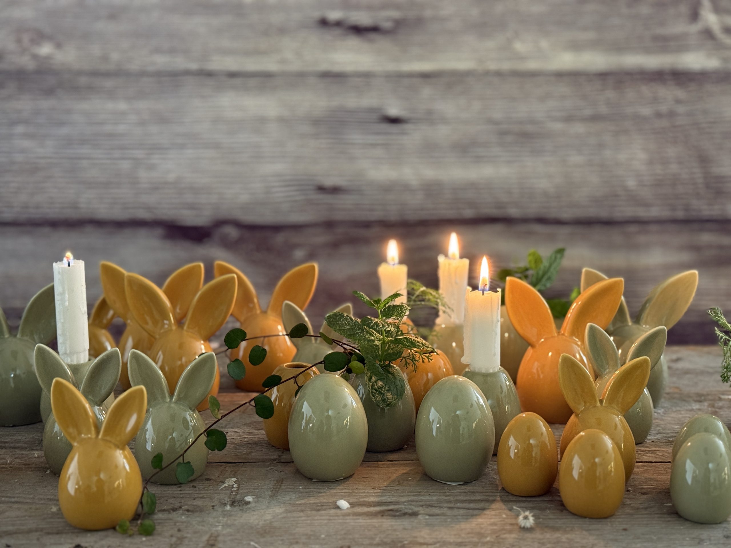 Skapa en lekfull och mysig påskkänsla med serien Odd, dekorationer fina att samla i olika grupper med ljusstakar, ägg, vasar och harar!