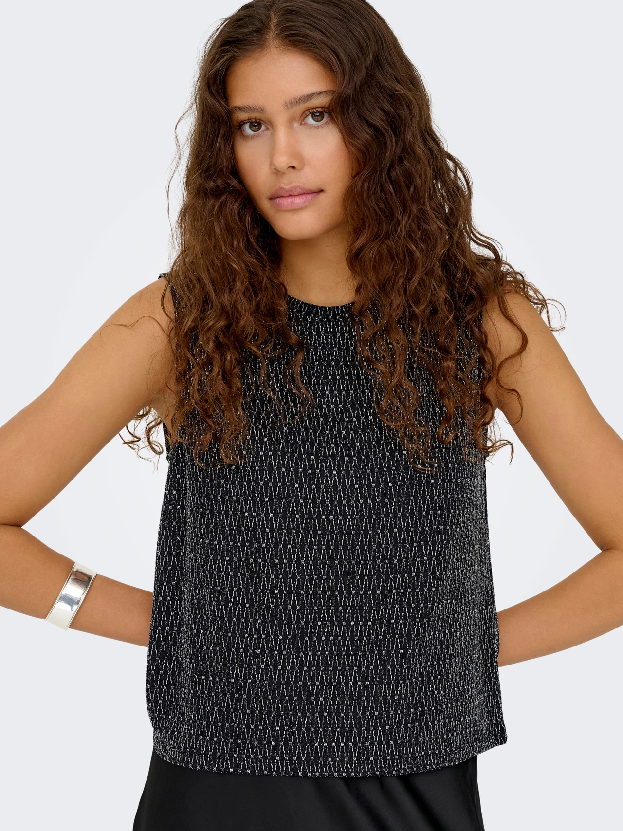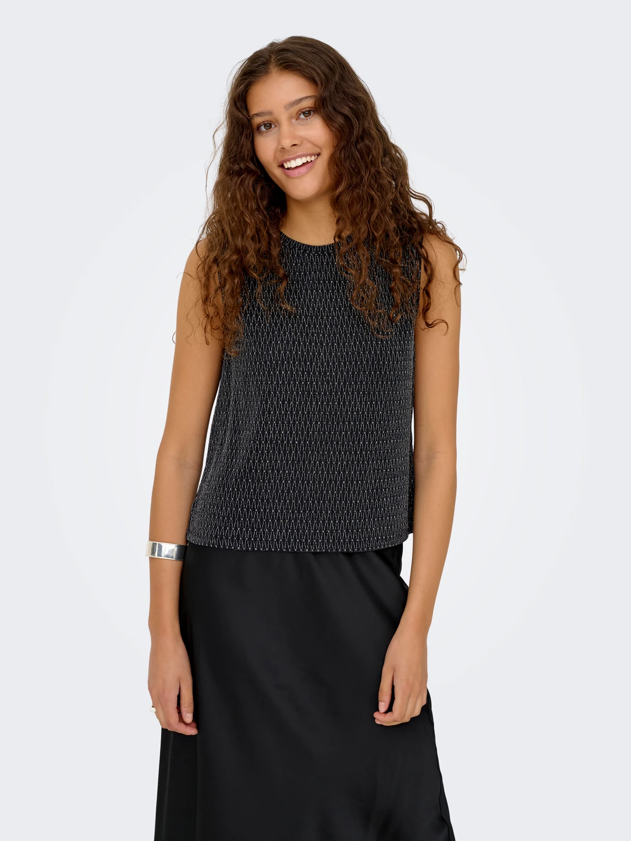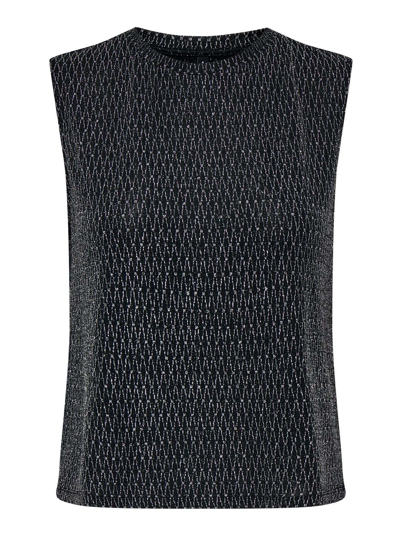 Ärmlös topp med glittrigt mönster, så snygg att sätta både under en kavaj eller en kofta!