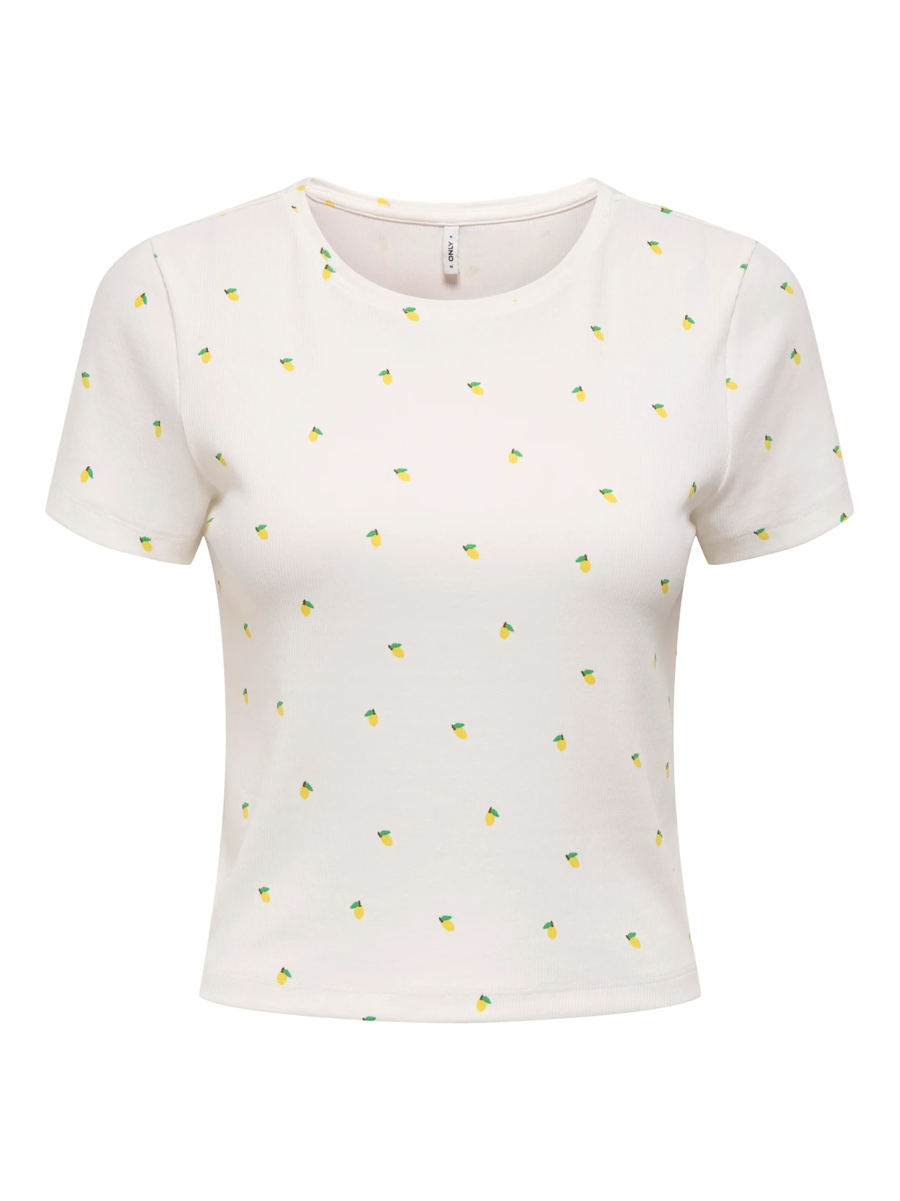 Ribbat material med små gula citroner printade över hela, perfekt för lata sommardagar!