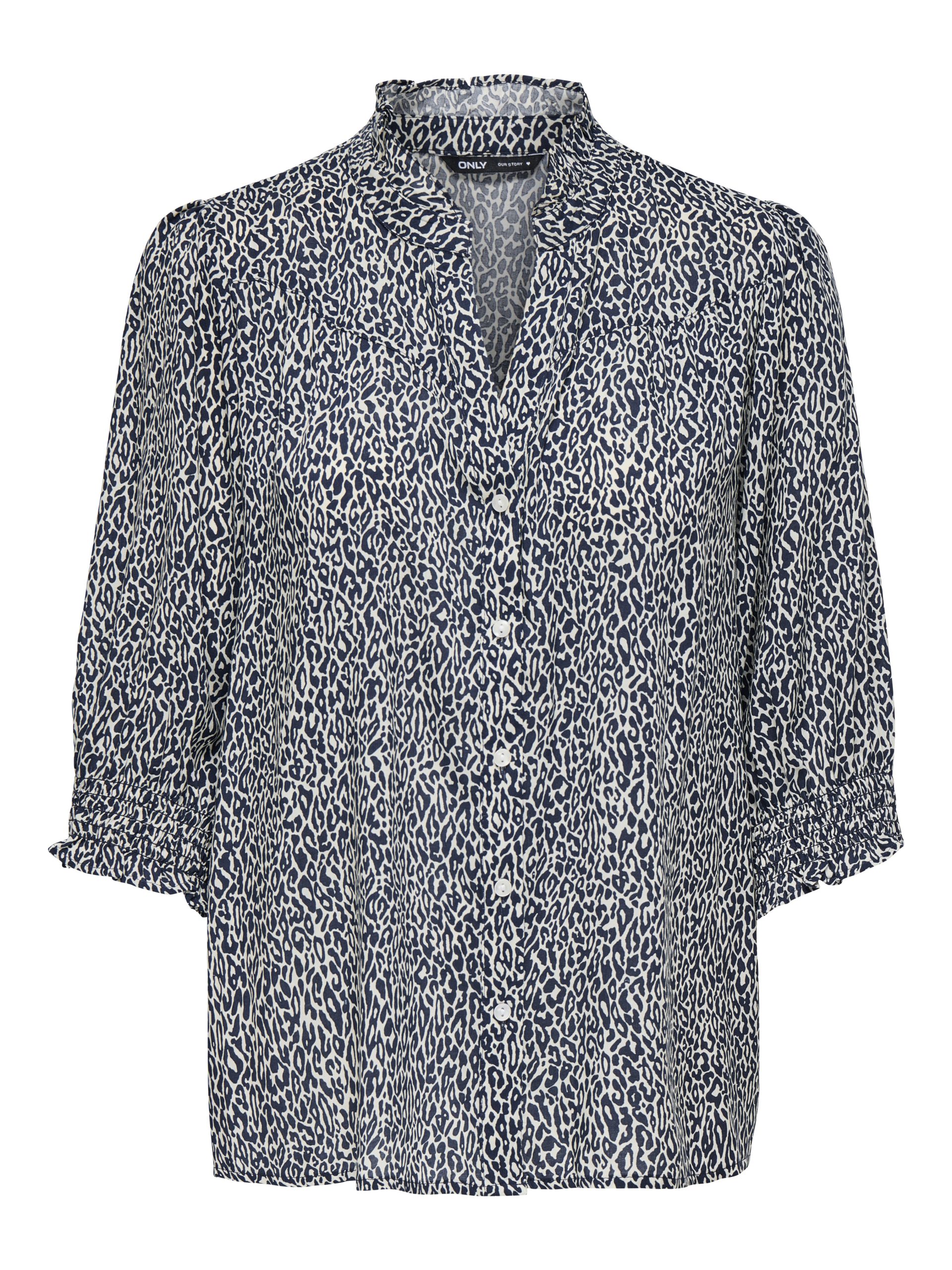 Mönstrad blus med 3/4 ärm som också har en fin smockdetalj.