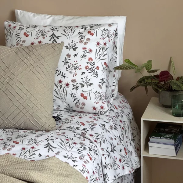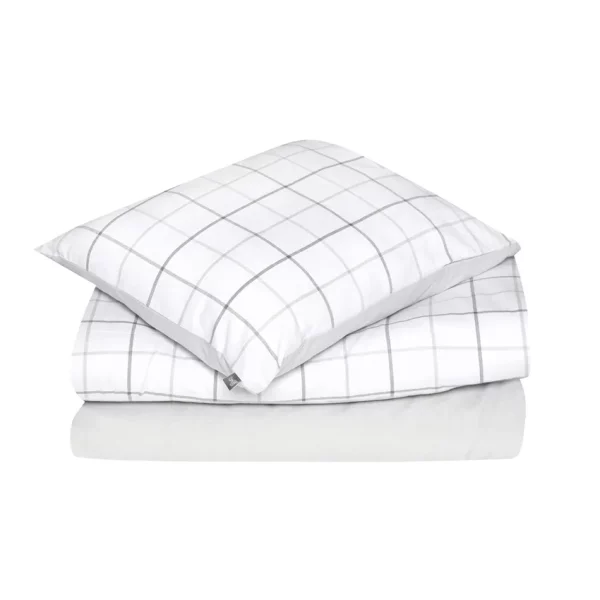 Ett snyggt påslakanset som gör det enkelt att bädda fint i sovrummet. “Gotland” sängkläderna pryds av ett klassiskt rutmönster på ena sidan, medan den andra är enfärgad i spräcklig chambray. Det gör att du kan variera stilen och skapa en klassisk hotellbäddning bara genom att vika ner täcket. Både örngottet och påslakanet är tillverkade i 100 procent bomull som är ekologiskt infärgad. De står emot dagligt slitage, samtidigt som vi i produktionen arbetar för att ha så lite negativ påverkan på miljön som möjligt.