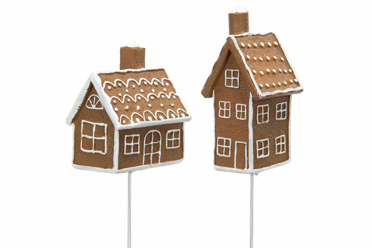 Söta pepparkakshus på pinne, perfekta att dekorera en krans med.