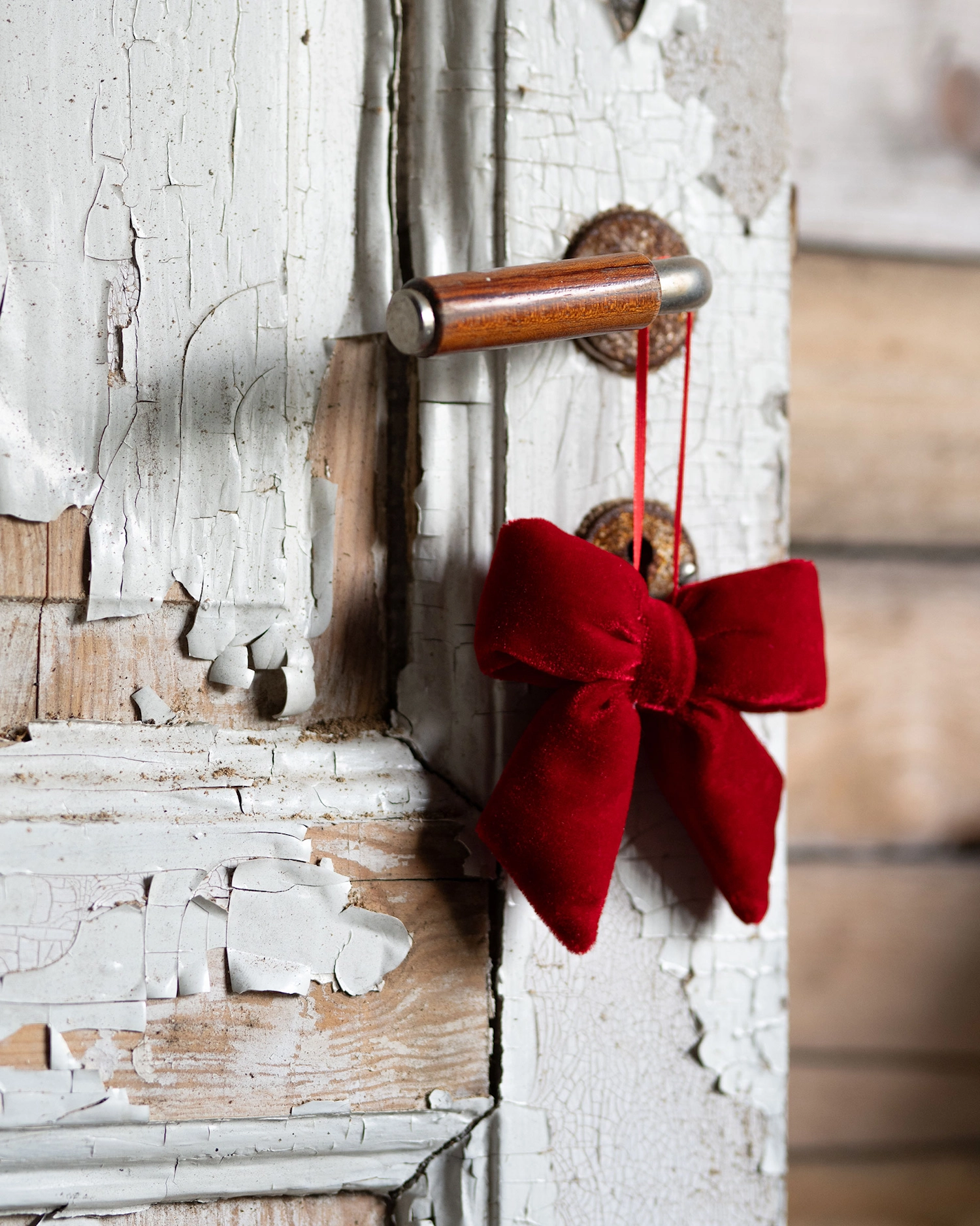 Liten rosett i sammet som är fin att dekorera tex en dörr eller en krans.