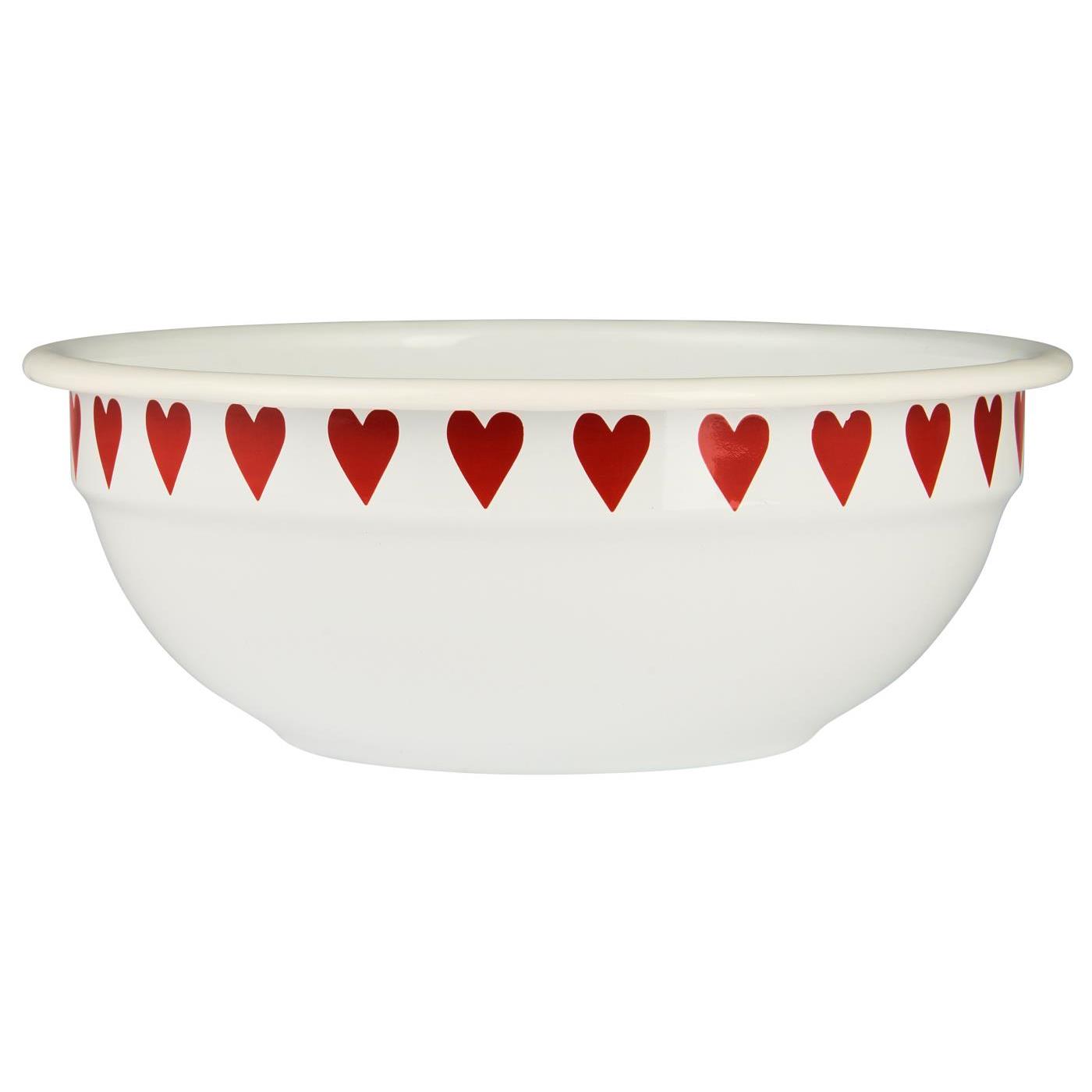 Skål i emalj med ett rött hjärta.