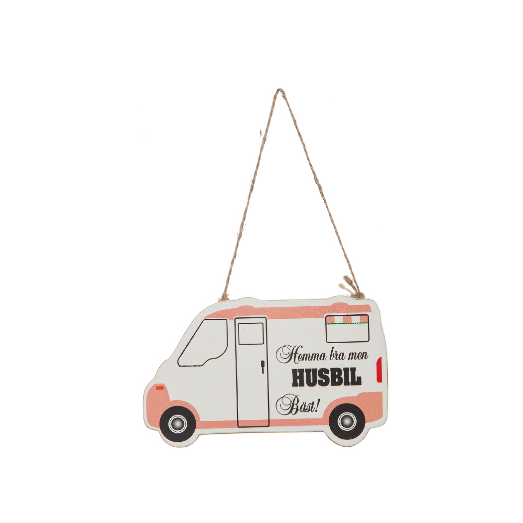 Skylt Husbil i trä. Välj mellan 3 färger, orange, rosa, mint.