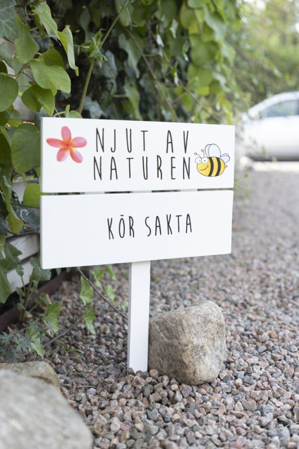 Liten skylt i trä, “Hemma bra men husbil Bäst!”