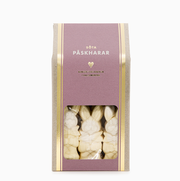 Ingredienser: Socker, glukos-fruktossirap, vatten, gelatin, fuktighetsbevarande medel (sorbitol), aromämne (vanilj), färgämne (E100).