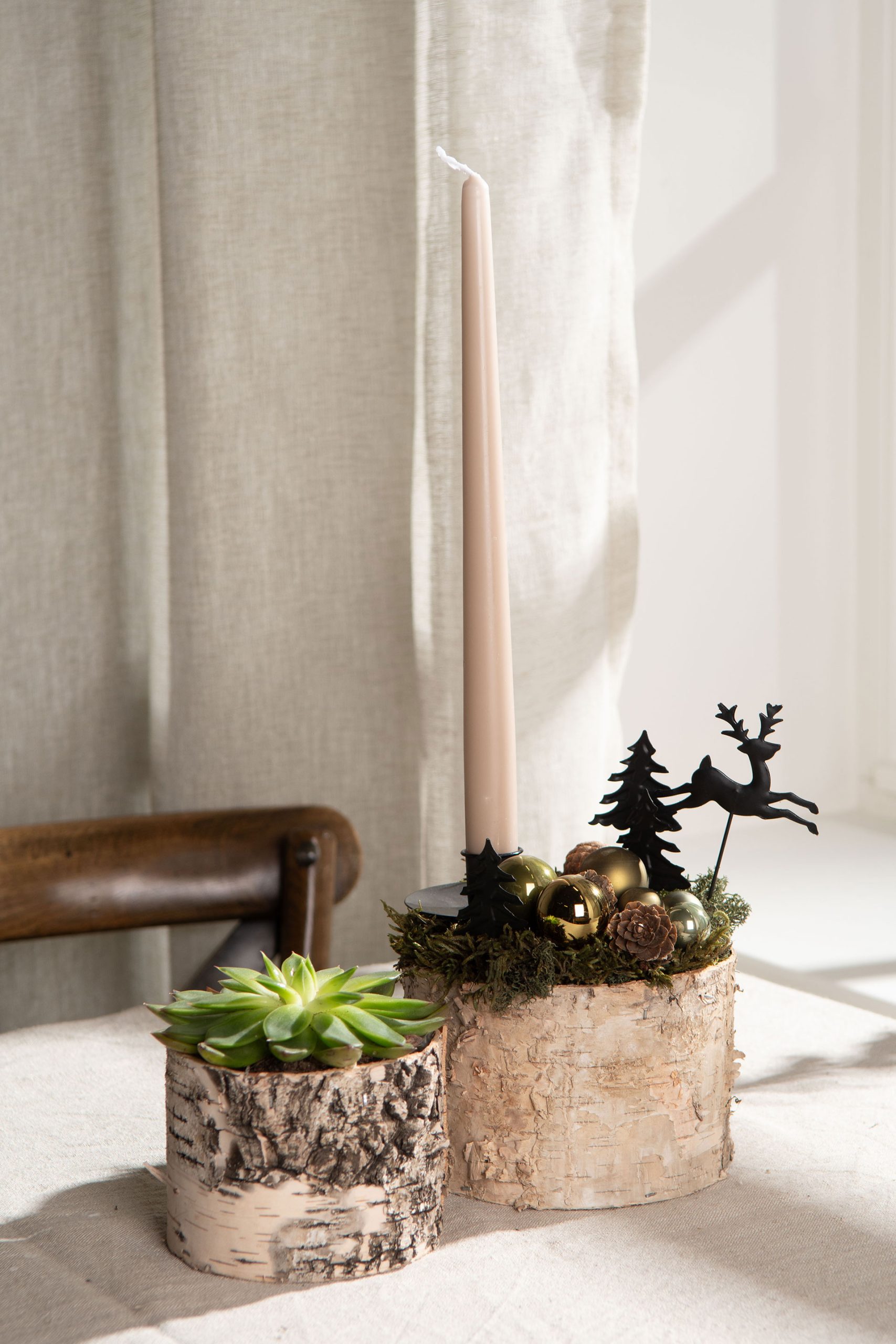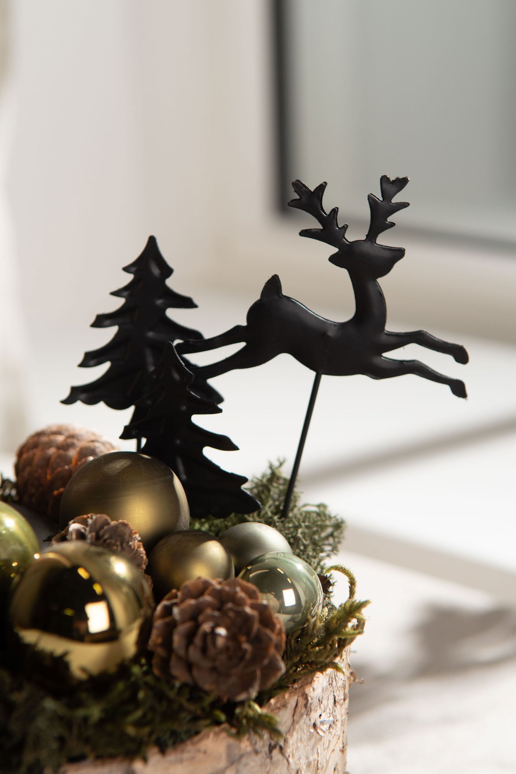 Skapa ett fint blomsterarrangemang med julkänsla och sätt i en stick med hjort.