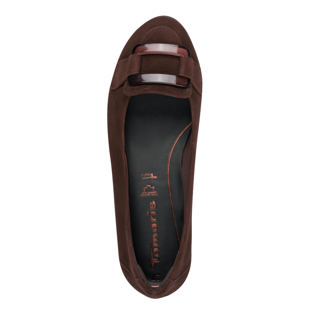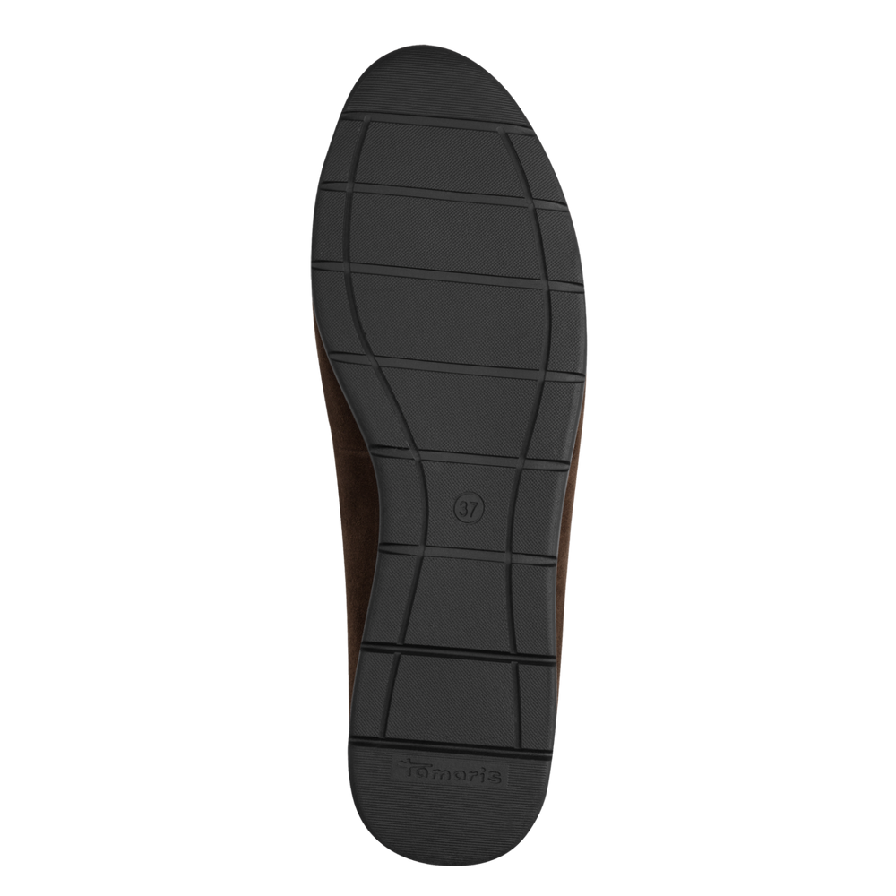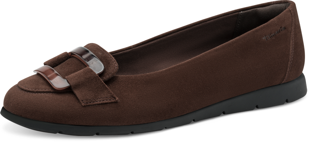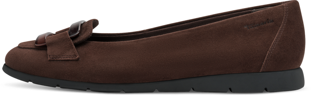 Sko från Tamaris som är något mellan en ballerina och loafer. Den har också en jättefin mörkbrun färg och ett spänne över tårna som detalj.