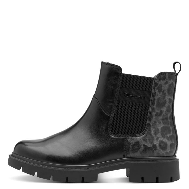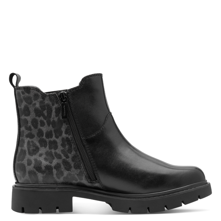 Boots med en något grövre sula och en diskret leo-print på den bakre delen av skon.
